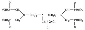 別名:二乙烯三胺五亞甲基膦酸 分子式:C9H28O15N3P5 相對分子質量:573.2 結構式: